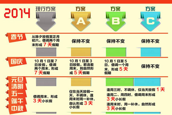 假日辦征求對假期意見,三種方案拿出來征求民意,用哪個都會招來吐沫。其實(shí)這也不是眾口難調(diào),而是管得太寬。一年放多少假,怎么個放法,把公務(wù)員給規(guī)定好了就結(jié)了。至于一般群眾想怎么休息,讓大家自行決定不好嗎?有那個絞盡腦汁琢磨挪日子的精力,真不如好好想想怎么落實(shí)勞動法,讓大家能踏實(shí)休息,踏實(shí)帶薪休假,踏實(shí)每周40小時工作制。瞧瞧古今中外,哪個國家、哪個朝代,有為放假這么嘬牙花子的么?